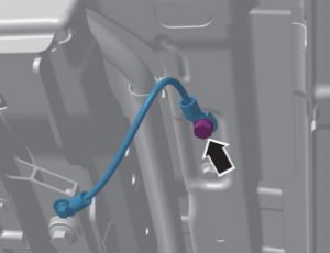 ③斷開電池高壓線束連接插頭(箭頭B)